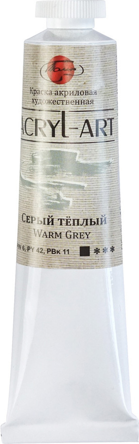 Краска акриловая художественная Акрил-Арт, "Таир", туба 45 мл, Серый тёплый