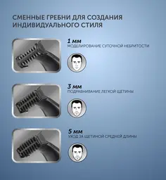 Подходит для стрижки бороды, усов, волос на теле. 3 в 1: бритье, подравнивание, четкий контур. Высокоуглеродистая нержавеющая сталь. 3 сменных гребня: 1, 3, 5 мм. Минимальная длина стрижки 0,1 мм. 120 минут работы от аккумулятора. Возможность зарядки от USB. 1,5 часа для полного заряда. Li-ion батарея. Технология влагозащиты IPX5 WaterProof. Возможность бритья в душе. Сухое и влажное бритье. Сумочка для хранения. Щеточка для чистки. Масло для ухода.