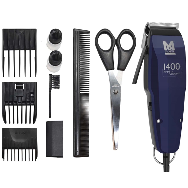 Машинка для стрижки Moser 1400-0452 с пластиковым черно-синим корпусом относится к категории качественных бытовых моделей и позволяет регулярно подравнивать волосы на голове, заботиться о бороде. Укомплектованный тремя сменными насадками прибор позволяет выбрать желаемую длину стрижки волос (0.7-18 мм) и предлагает 14 установок длины. При использовании машинки без насадки волосы срезаются на высоту 0.7 мм, а при установке насадки минимальная высота волос составляет 4 мм. Машинка для стрижки Moser 1400-0452 получает питание от сети 220 В и обладает двухметровым сетевым шнуром, который не стесняет движения оператора в процессе стрижки. Кольцо в основании сетевого шнура позволит подвешивать электроприбор на крючок и хранить его в вертикальном положении. Снабженная долговечным и острым лезвием из нержавеющей стали машинка комплектуется не только насадками, но и парикмахерскими ножницами, расческой, щеточкой и маслом для ухода за лезвием.