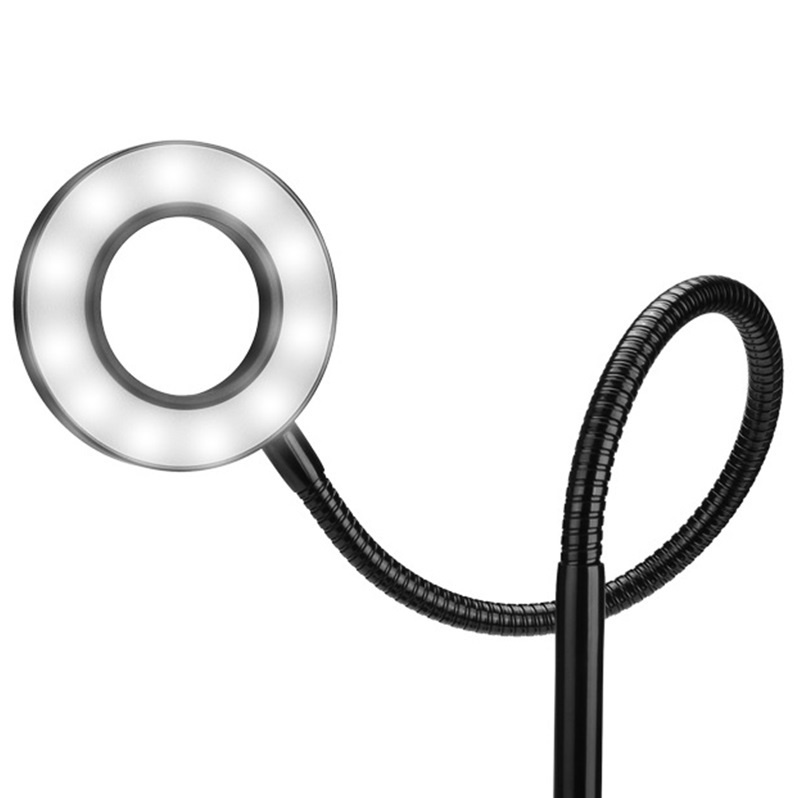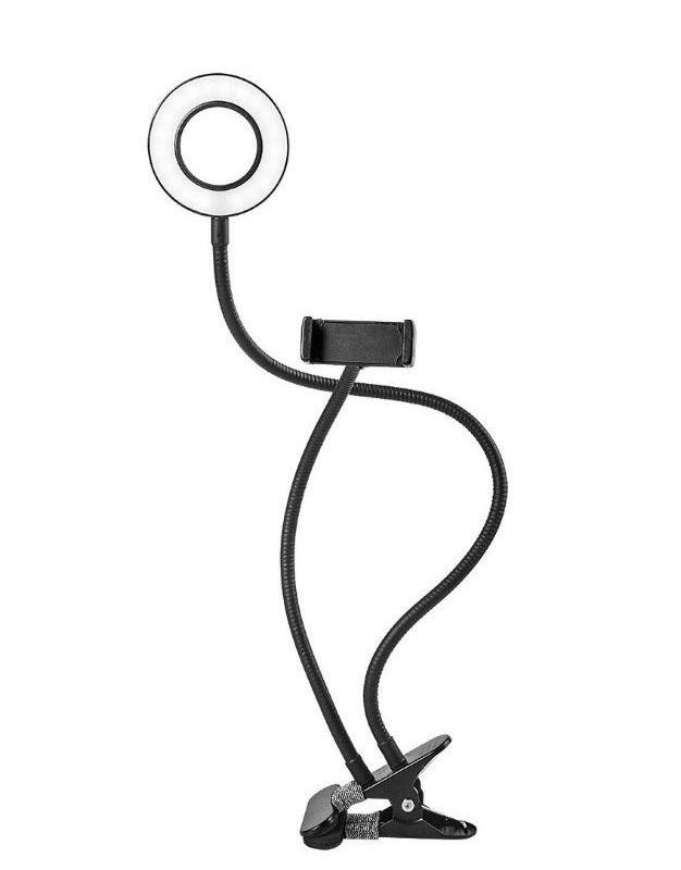 Гибкая светодиодная LED лампа на прищепке в форме кольца, черная