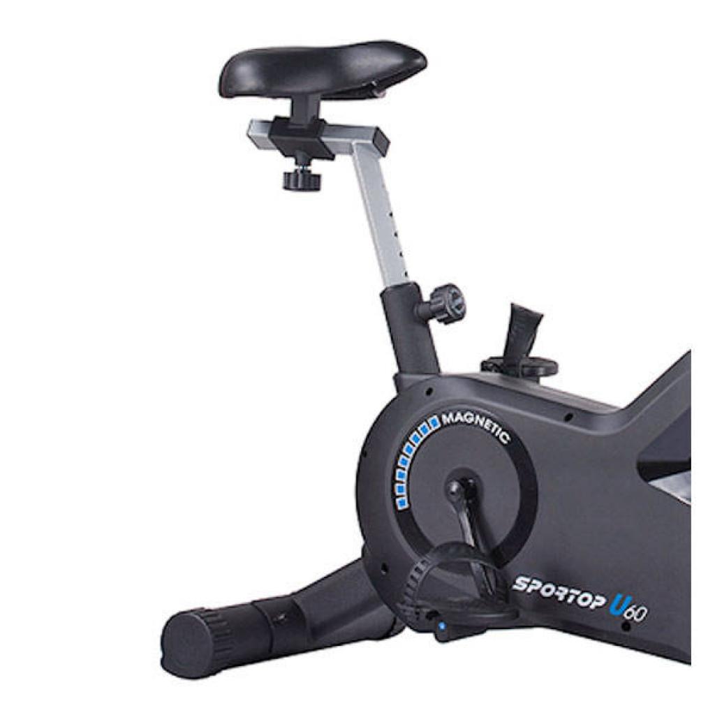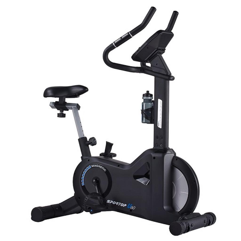 Особливості Sportop U60: електронне регулювання навантаження за допомогою консолі; зручний нахил дисплея; програмний модуль має 12 вбудованих програм; сенсорні датчики вимірювання пульсу розташовані на мультіпозіціонних ергономічних держаках; комфортне сидіння, регульоване по висоті і по горизонталі; зручний тримач для пляшки з водою; процес переміщення легкий і зручний, завдяки оснащенню транспортувань роликами; прекрасну стійкість забезпечують компенсатори нерівності підлоги.