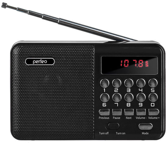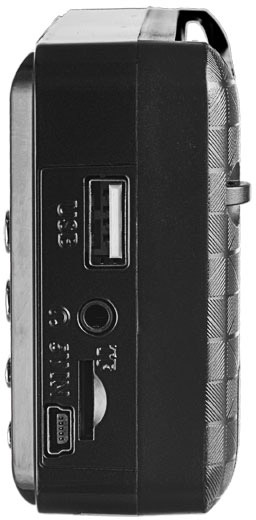 переносной радиоприемник, мощность звука 3 Вт, прием FM, фиксированных настроек: 50, воспроизведение MP3, вес 0.207 кг, разъем для наушников