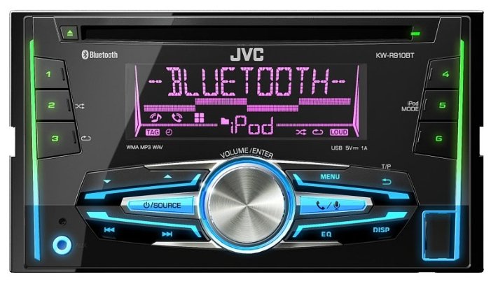 4x50 Вт, тюнер (FM, СВ), CD, MP3, WMA, поддержка iPod, Bluetooth, выход на сабвуфер, разъем USB, монохромный дисплей, 2 DIN