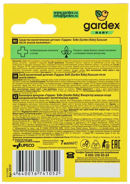 Бальзам для тела детский Gardex Baby 0123 после укусов насекомых (7мл)