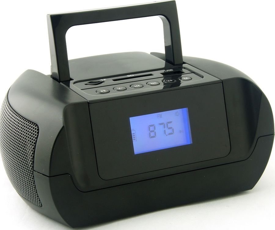 портативный флэш-плеер, мощность звука 6 Вт, поддержка MP3, тюнер FM, линейный вход, воспроизведение с карт памяти SD, воспроизведение с USB, поддержка Bluetooth