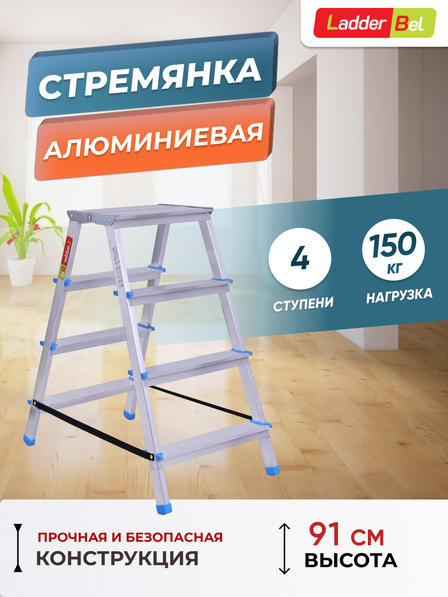 Стремянка 4-х ступ.алюм.двуст. с широкой площадкой STRD-AL-4H