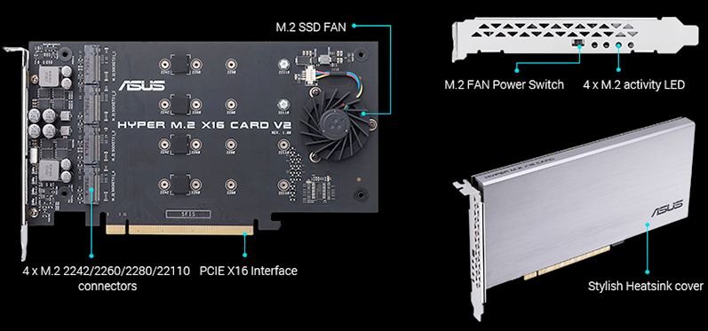 Адаптер для создания массивов RAID ASUS Hyper M.2 X16 Card V2