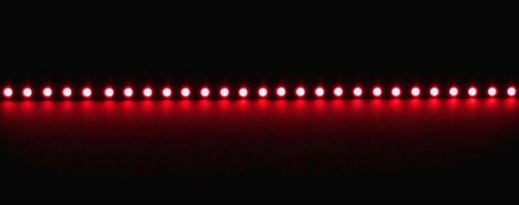 светодиодная лента, 27 красных светодиодов, длина волны 620 - 625 нм, потребляемая мощность 6.4Вт, питание разъём 3-pin, в комплекте клейкие полоски для крепления ленты к плоской поверхности, 30см