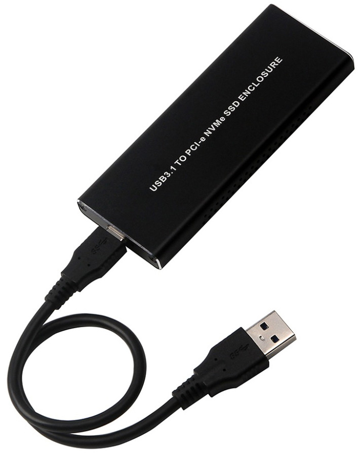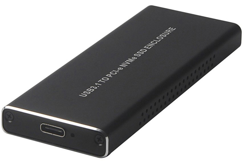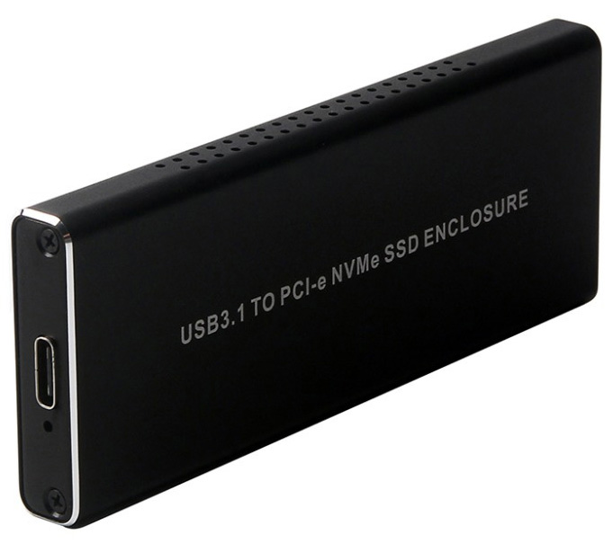 внешний корпус для SSD M.2 NVMe Type 2242/2260/2280 M key, материал: алюминий, интерфейс подключения: USB Type-C, питание от USB-порта