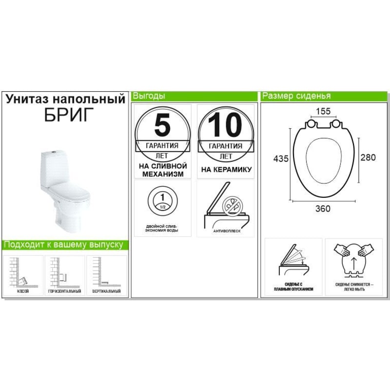 Унитаз-компакт «‎Бриг»‎ горизонтальный выпуск одинарный слив