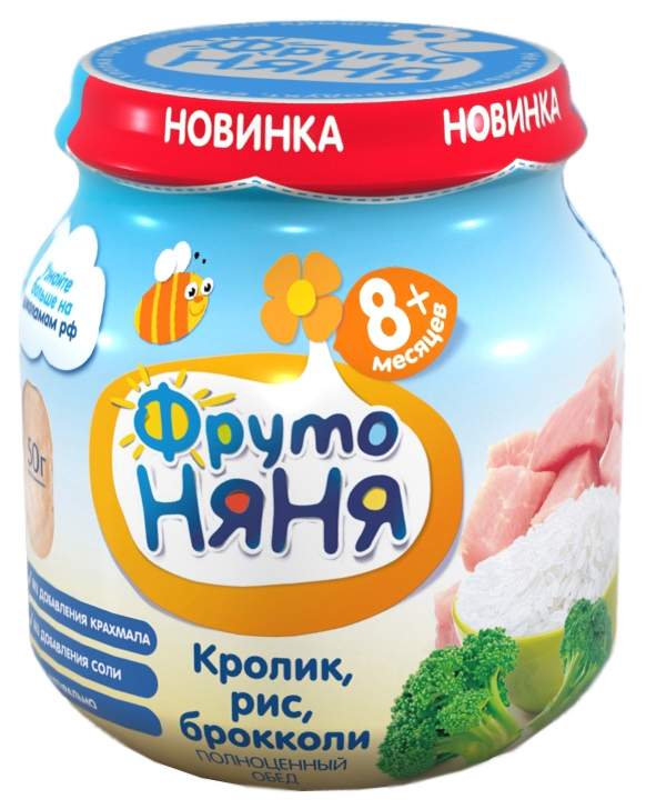 - Состав капуста брокколи; мясо кролика; крупа рисовая; масло растительное; вода питьевая