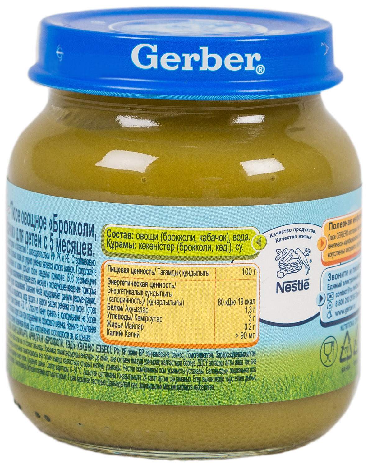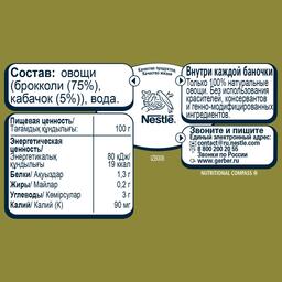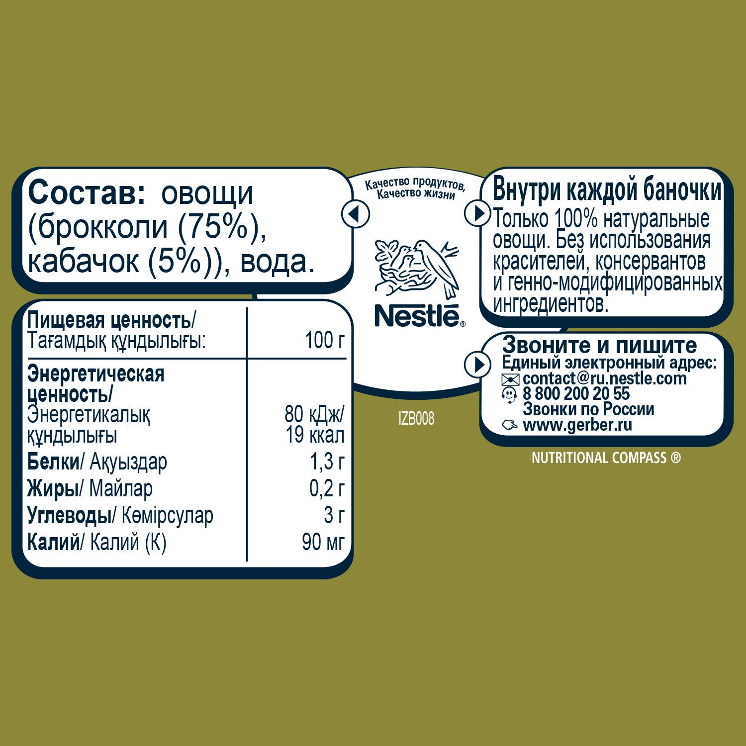 - Состав Овощи (брокколи (75%), кабачок (5%)), вода.