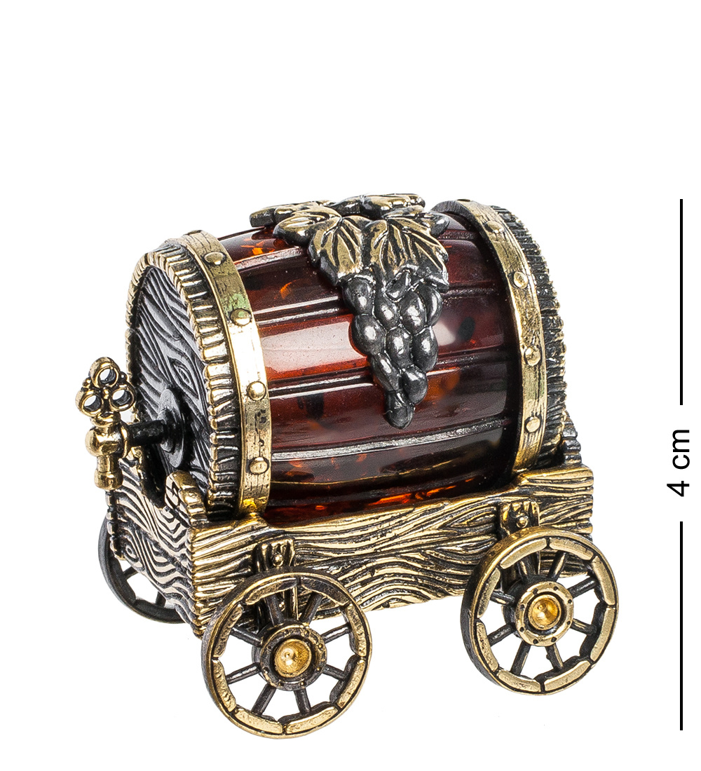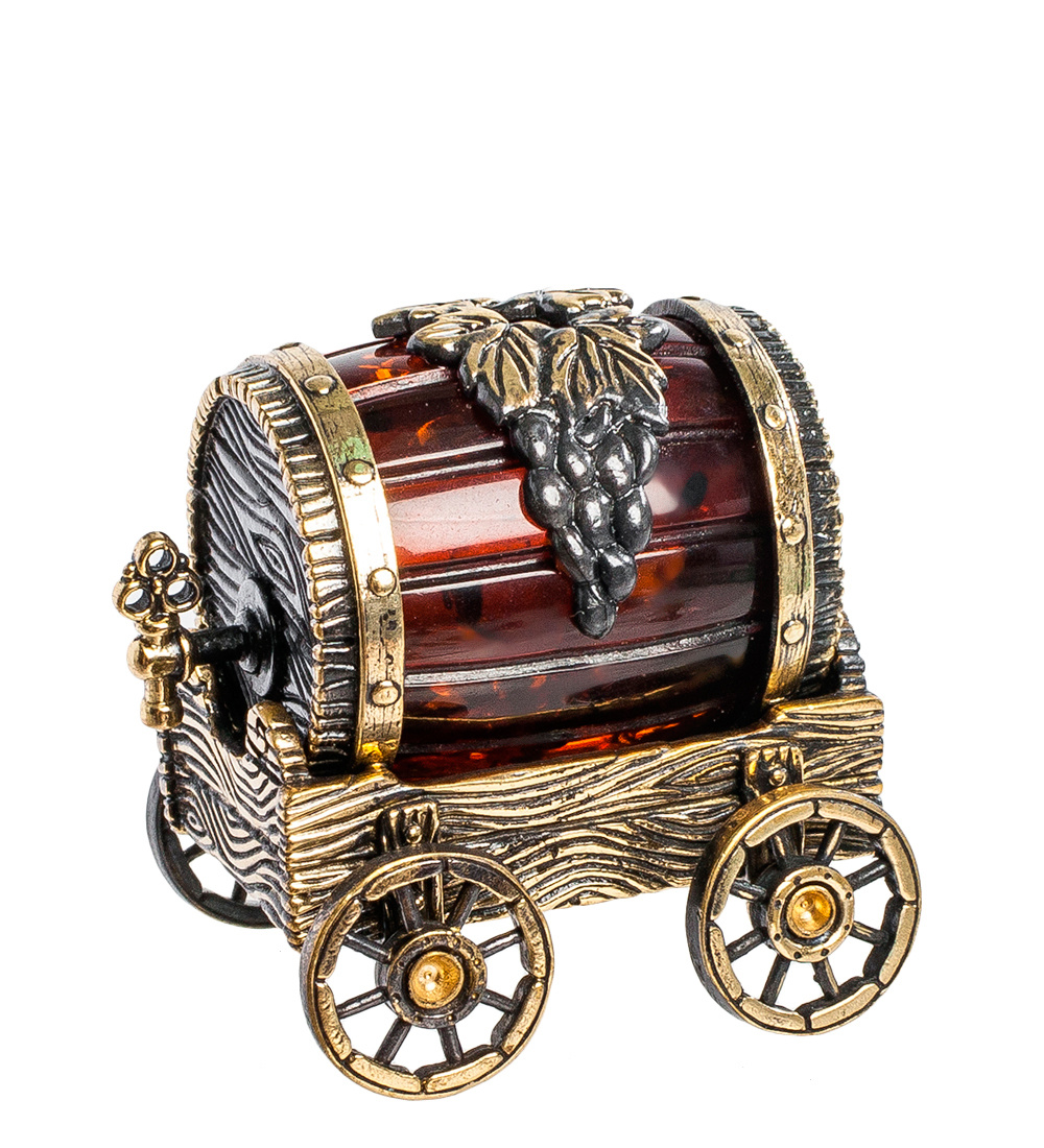 Фигурка "Повозка с бочкой" (латунь, янтарь)