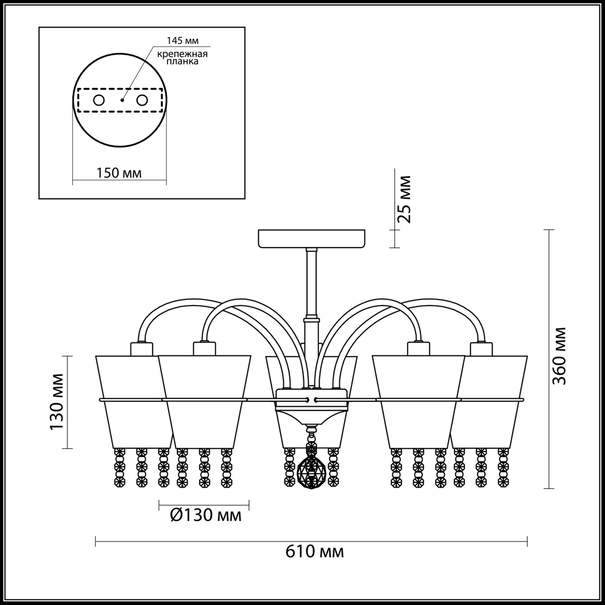 - Количество ламп, шт 5