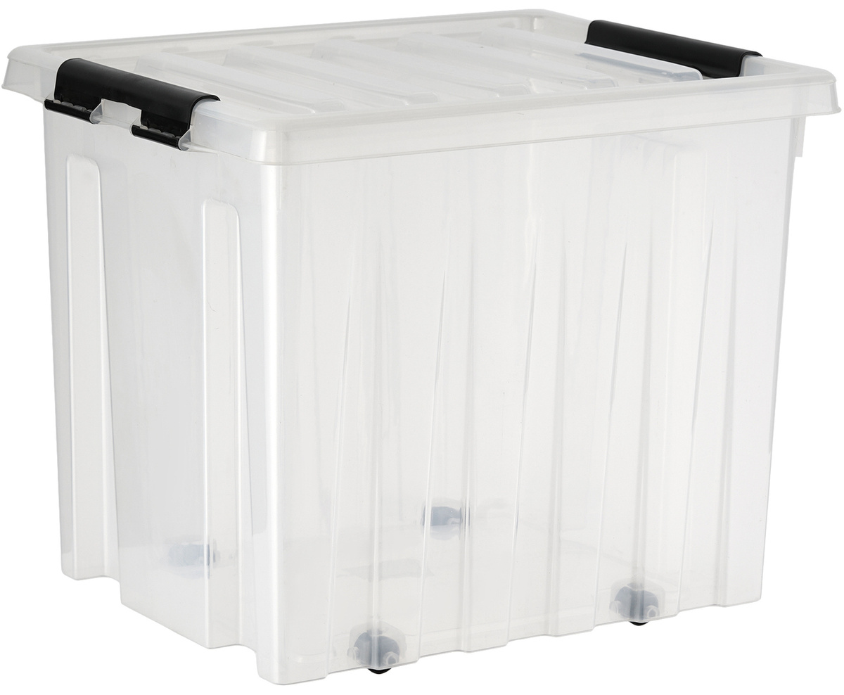 Ящик для хранения вещей пластиковый, 50 л, 405x390x500 мм, с крышкой, на роликах, прозрачный
