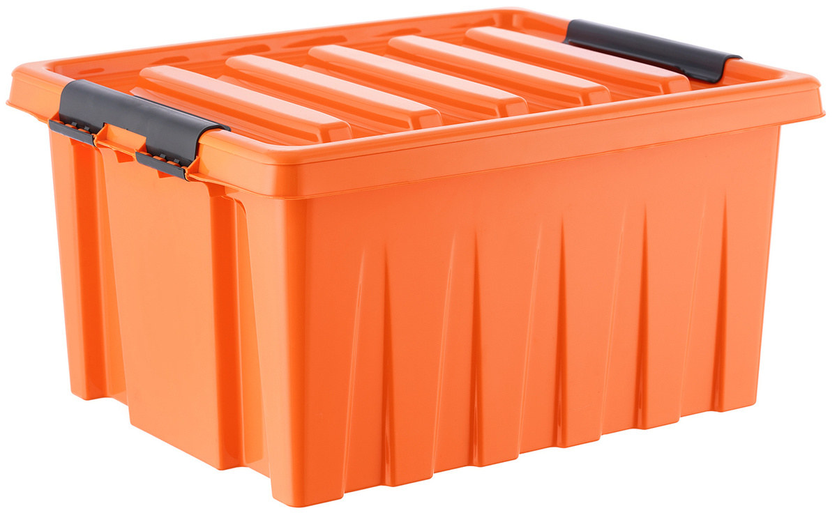 Ящик для хранения вещей пластиковый, 36 л, с крышкой и клипсами, оранжевый