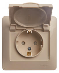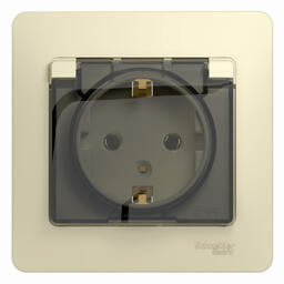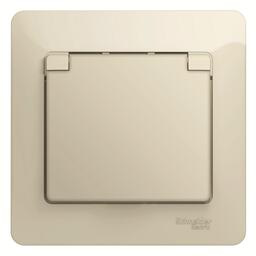 SE Glossa Беж Розетка с/з со шторками с крышкой, IP20 (в сборе с рамкой) (GSL000246)