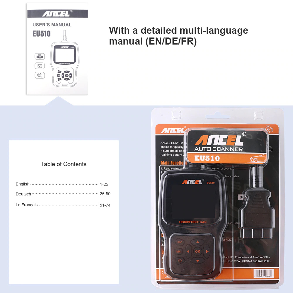 Автосканер ANCEL EU510 OBDII/EOBD+CAN