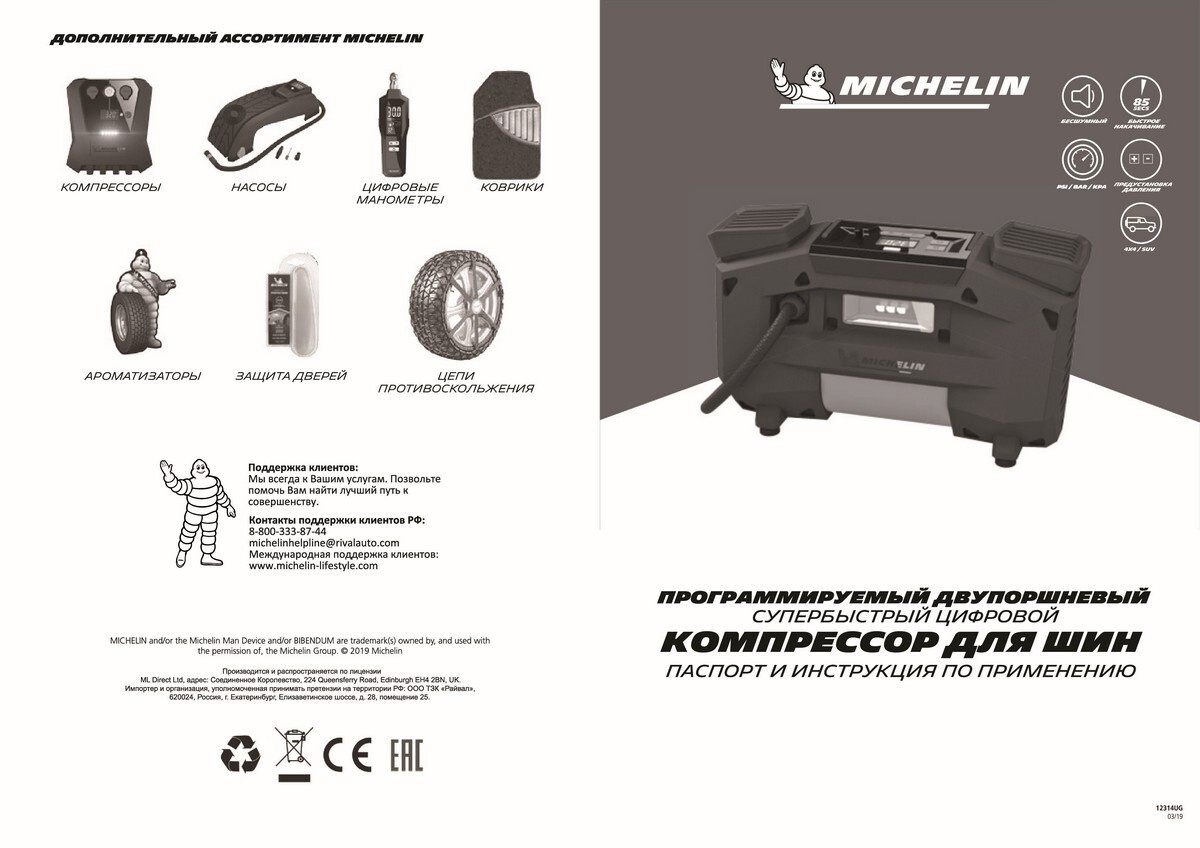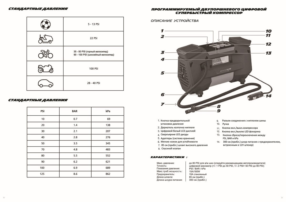 Автомобильный компрессор MICHELIN, цифровой двухпоршневой, программируемый, 12В, с LED подсветкой