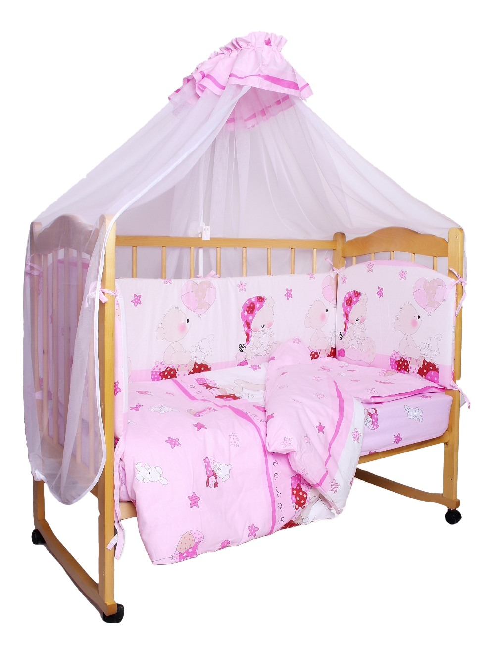 - Комплектация балдахин; бортик; наволочка; одеяло; пододеяльник; подушка; простыня
