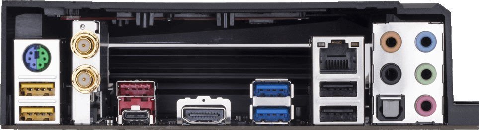 - Разъёмы на задней панели PS/2, 2 x USB 2.0, 5 x USB 3.1, USB 3.1 Type-C, HDMI, RJ-45, S/PDIF (оптический)