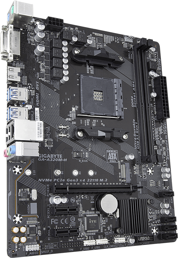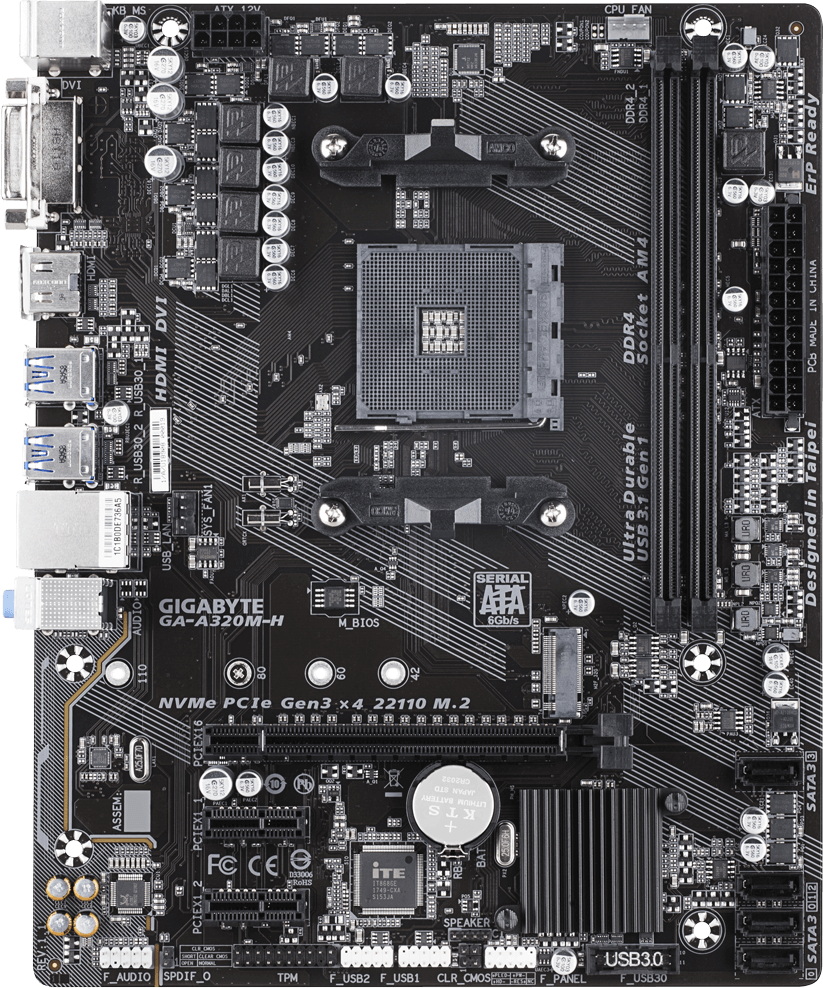 Socket AM4, AMD A320, 2xDDR4, USB3.1, DVI, HDMI, mATX