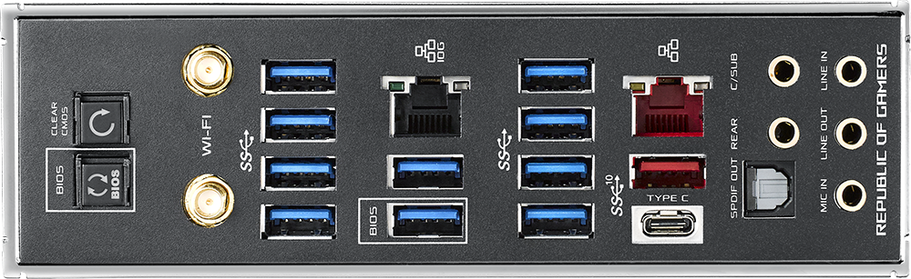 • Разъёмы на задней панели 11 x USB 3.1, USB 3.1 Type-C, 2 x RJ-45, S/PDIF (оптический)