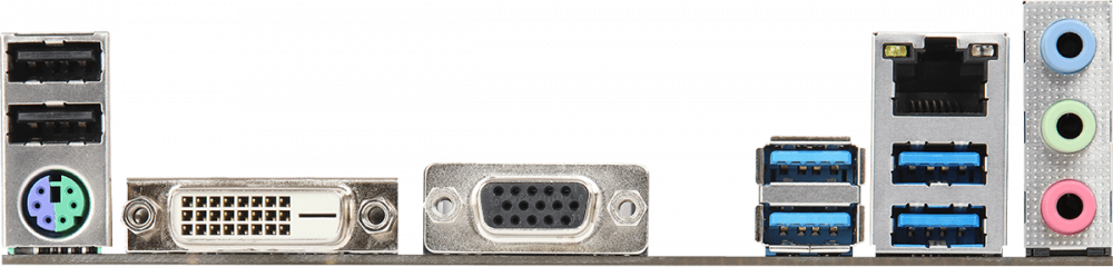 - Разъёмы на задней панели PS/2, 2 x USB 2.0, 4 x USB 3.1, VGA (D-Sub), DVI, RJ-45