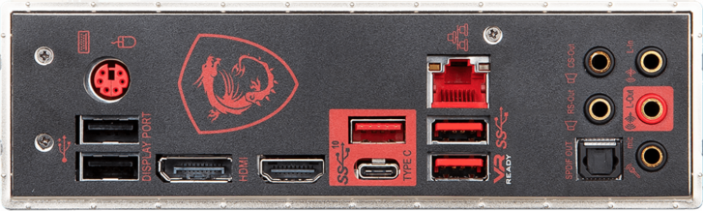 • Разъёмы на задней панели PS/2, 2 x USB 2.0, 3 x USB 3.1, USB 3.1 Type-C, HDMI, DisplayPort, RJ-45, S/PDIF (оптический)