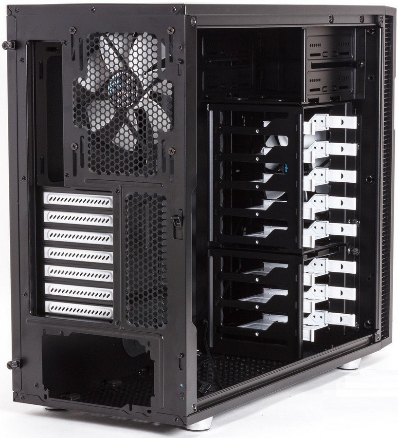 • Места для дополнительных вентиляторов 2 x 140 мм на верхней панели, 140 мм на боковой панели, 2 x 140 мм на нижней панели