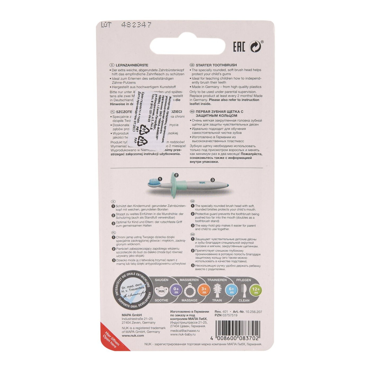 NUK Первая зубная щетка с защитным кольцом, с 12 мес.