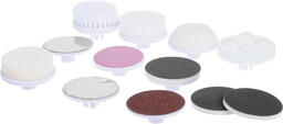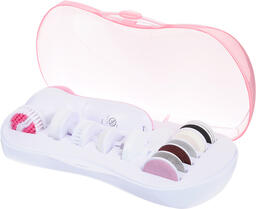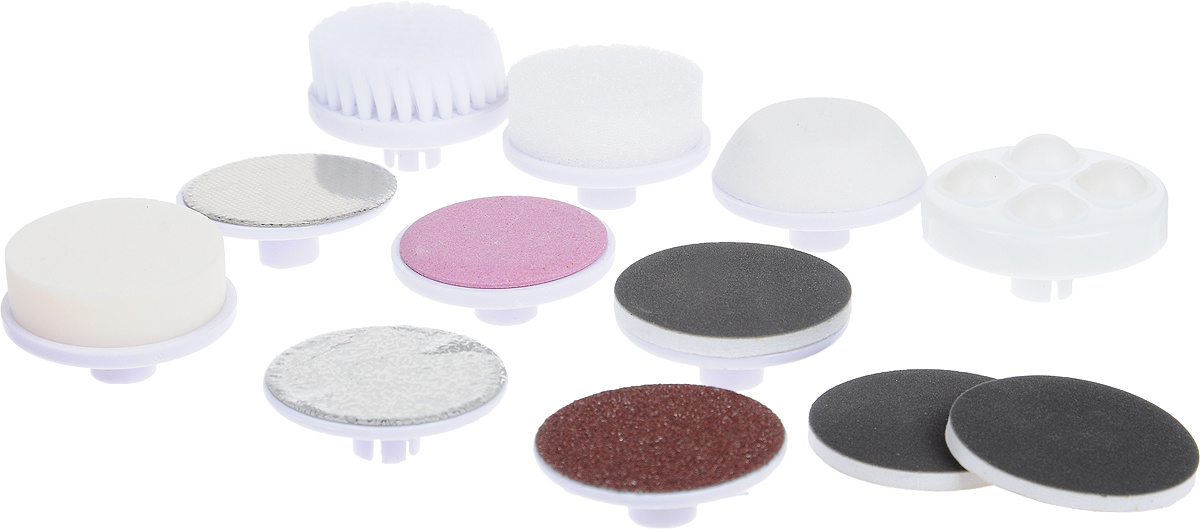 • Комплектация: Прибор для маникюра и педикюра, мягкая щетка, роликовый массажер, насадка пемза, насадка для полировки, мелкозернистая насадка, крупнозернистая насадка, кейс для хранения, инструкция