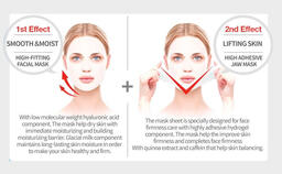 - Состав: [FACIAL MASK]: Water, Butylene Glycol, Glycerin, Cyclopentasiloxane, PEG/PPG-17/6 Copolymer, Cyclohexasiloxane, Citrus Paradisi (Grapefruit) Fruit Extract, Caprylic/Capric Triglyceride, Dimethicone, Polysorbate 60, Glyceryl Stearate, PEG-100 Stearate, Sorbitan Sesquioleate, Cetearyl Alcohol, Dimethiconol, Xanthan Gum, Ethylhexylglycerin, Hydroxyethyl Acrylate/Sodium Acryloyldimethyl, Taurate Copolymer, Acrylates/C10-30 Alkyl Acrylate Crosspolymer, Sodium Polyacrylate, Allantoin, Potassium Hydroxide, Sodium Hyaluronate, Sodium Oleate, Hydrogenated Lecithin, Acetyl Hexapeptide-8, Disodium EDTA, Phenoxyethanol, Fragrance. [FACE LINE JAW MASK]: Water, Glycerin, Sodium Polyacrylate, Citrus Paradisi (Grapefruit) Fruit Extract, Cellulose Gum, Aluminum Glycinate, Tartaric Acid, Allantoin, Titanium Dioxide, Hydrolyzed Collagen, Ethylhexylglycerin, Caffeine, Butylene Glycol, Chenopodium Quinoa Seed Extract, Phenoxyethanol, Disodium EDTA.