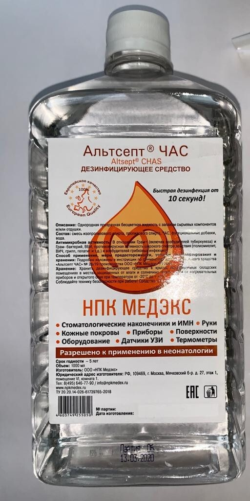 - Состав Спиртовой антисептик (2-пропанол– 45%, 1-пропанол – 15%, ЧАС, функциональные добавки).