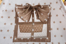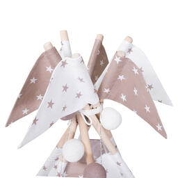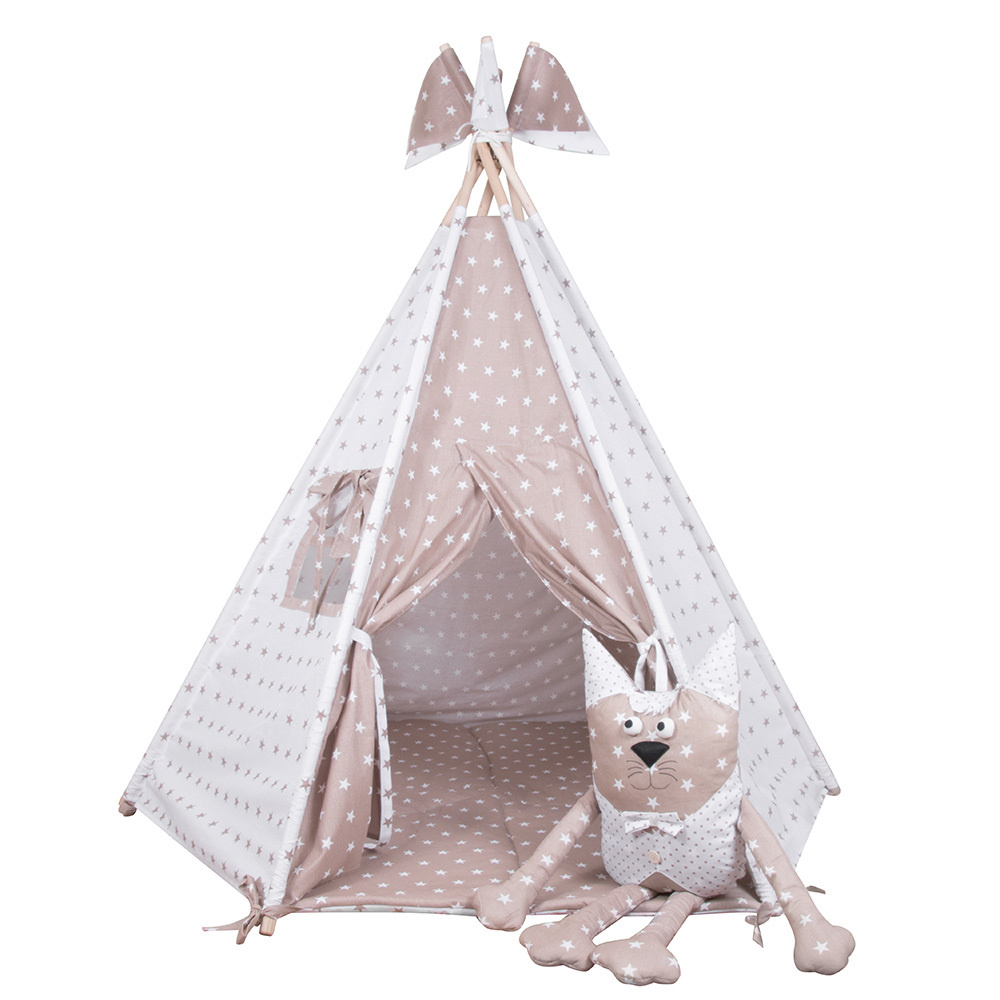 КомплектацияИзделие из хлопка домик-вигвам, окошко и кармашек, коврик стеганый, флажки на верхушку (6 шт.), мягкая игрушка, разборный каркас из 6-ти палочек, шнурок, система антискладывания, инструкция по сборке.