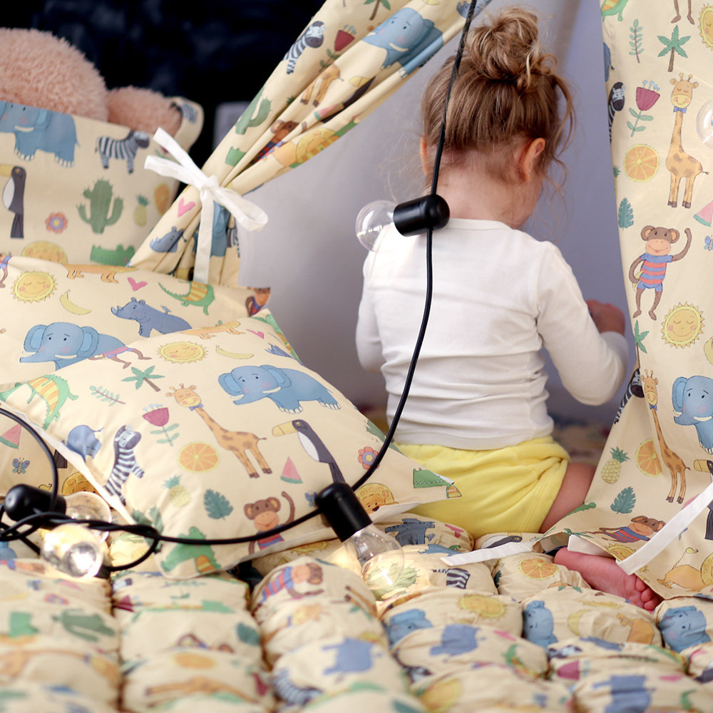 • Комплектация 4 рейки, ткань, веревка, мягкие наклейки на нижнее основание реек, фиксатор каркаса, инструкция по сборке.