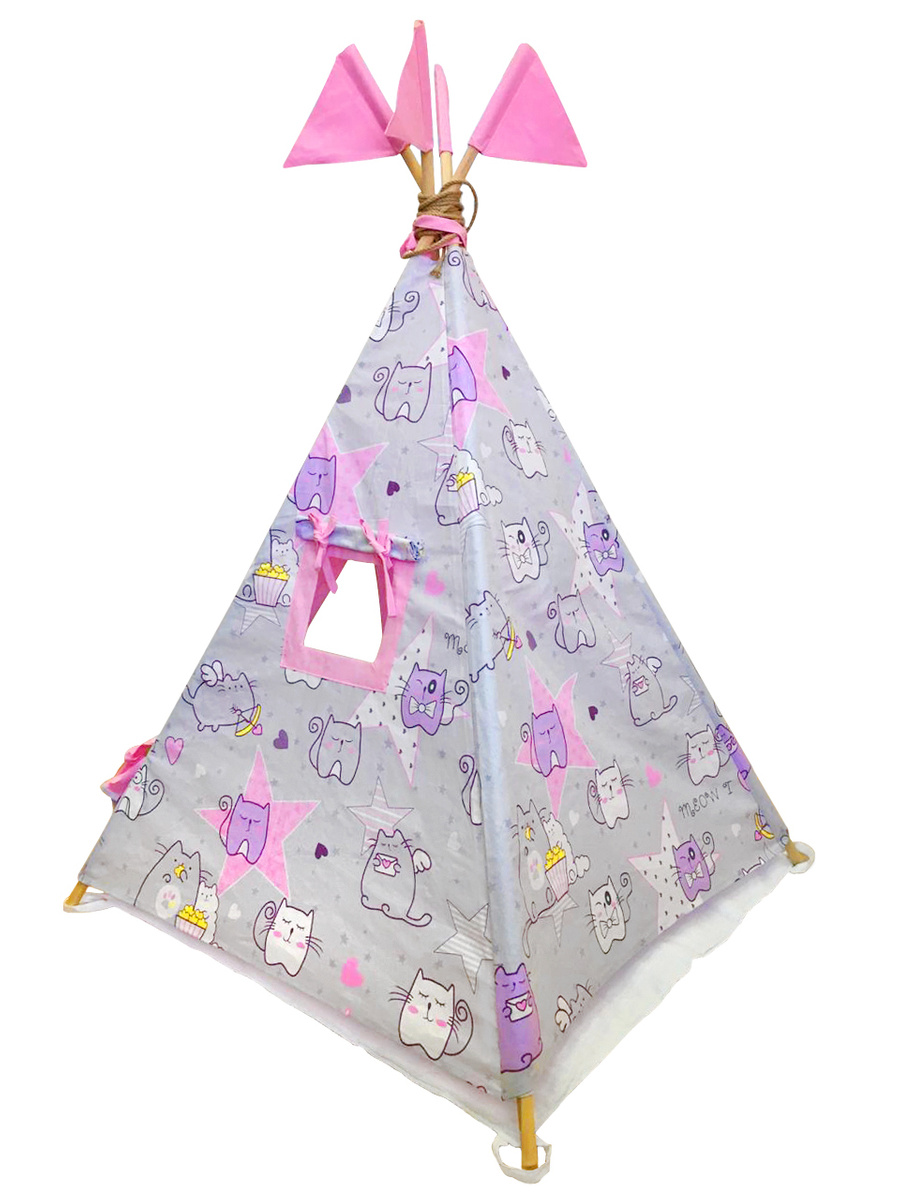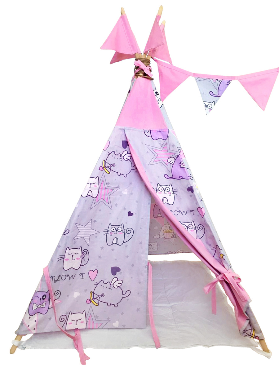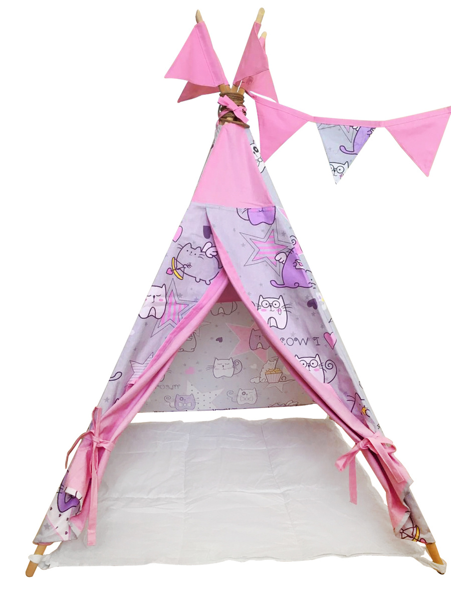 Детский Вигвам "Мяу-Мяу" с ковриком, флажками и системой антискладывания