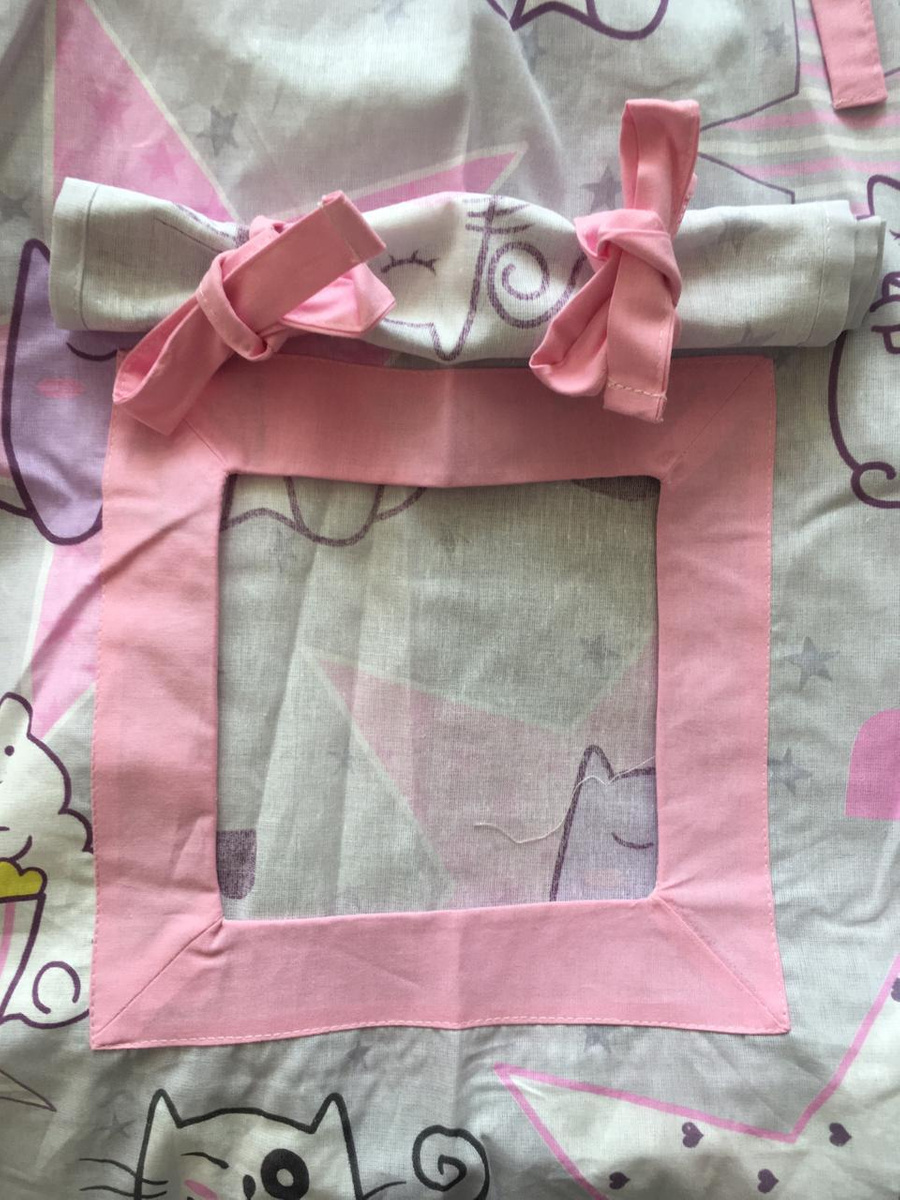 КомплектацияНакидка из хлопка, окошко, кармашек, гирлянда из флажков, флажки на верхушку, разборный каркас из 4-х палок (2-х составные), фурнитура, система антискладывания. Коврик из хлопка, наполнитель - холлофайбер, размер: 105х105х1,5 см.