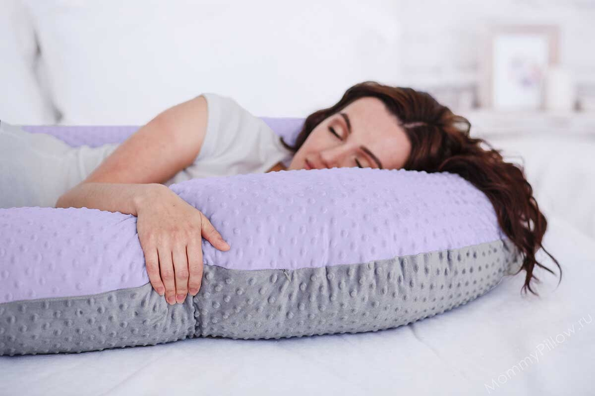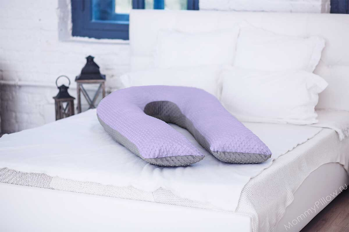 Двухцветная серо-сиреневая наволочка Minky на подушку для беременных MommyPillow U 360 см