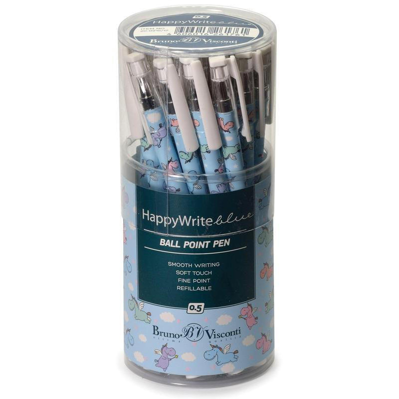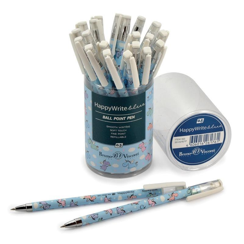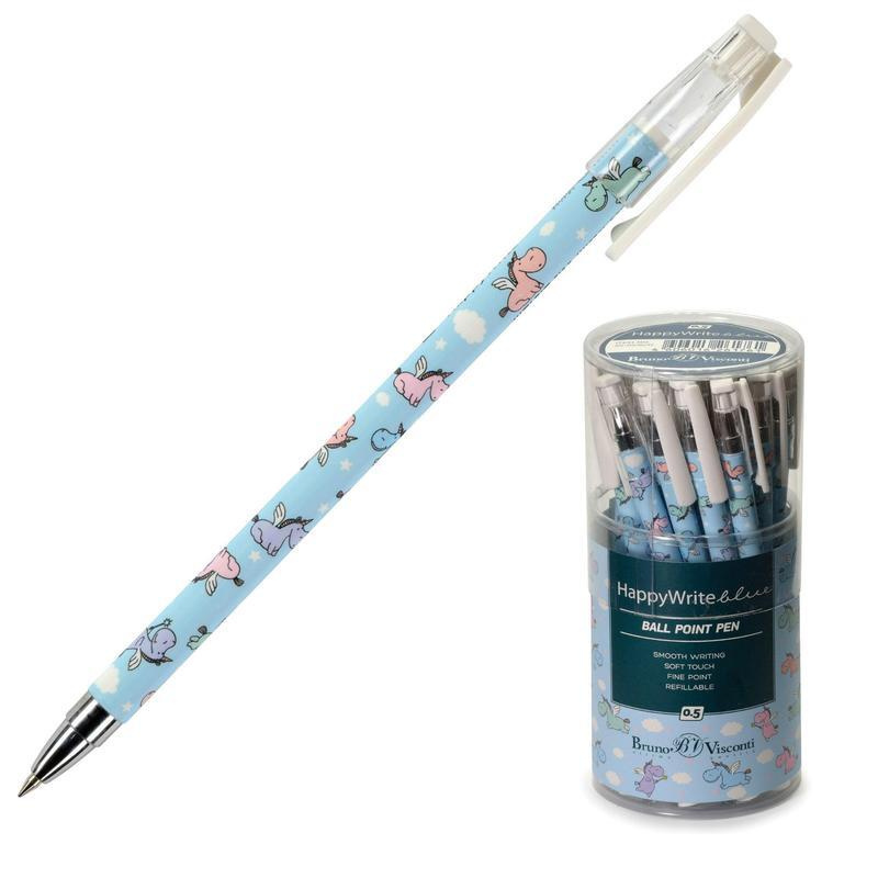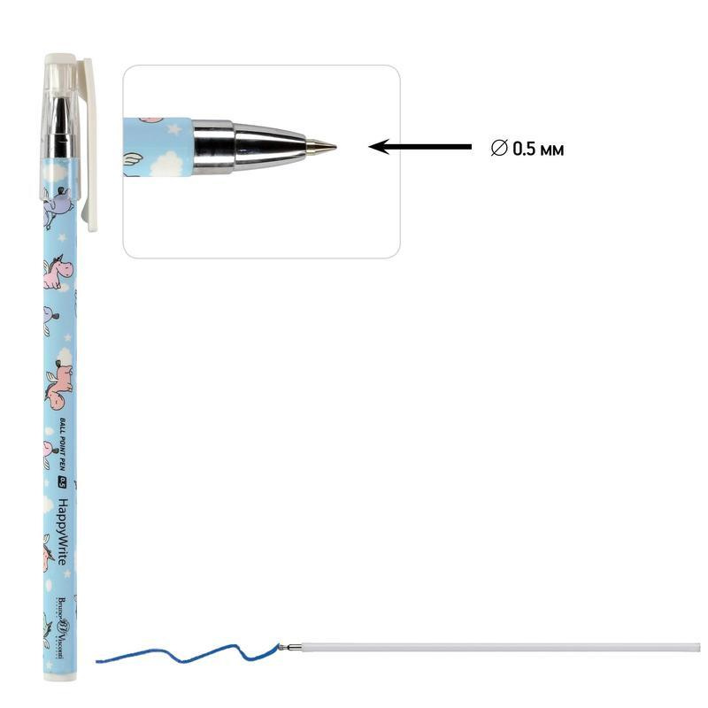 Ручка шариковая неавтоматическая HappyWrite Единорожки синяя (толщина линии 0.5 мм)
