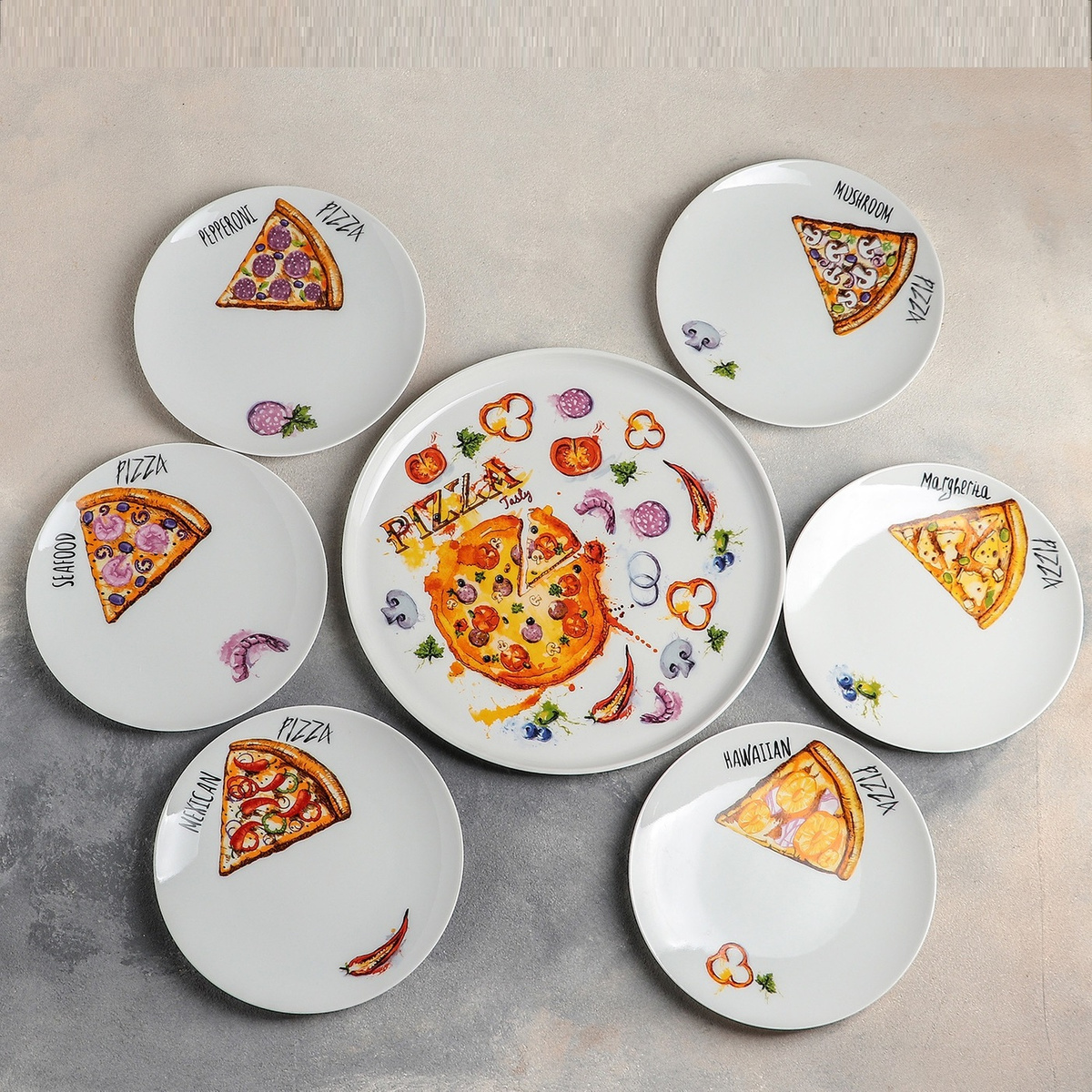 • Состав набора Комплектация Блюдо для пиццы 300 мм - 1 шт.; Тарелка 200 мм мелкая - 6 шт.