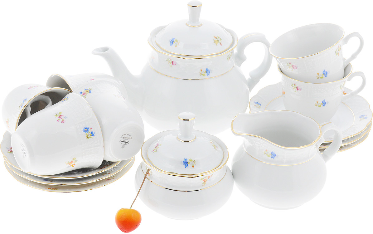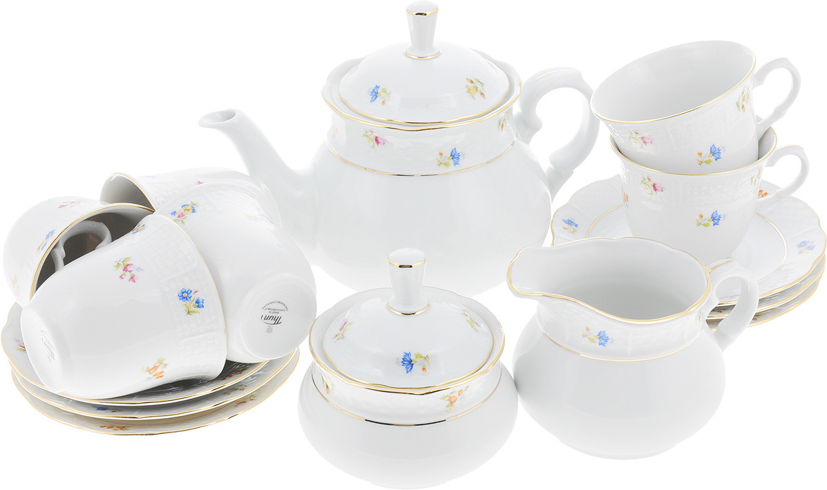 Чайный сервиз Мелкие цветы, отводка золото Natalie, на 6 персон, 17 предметов