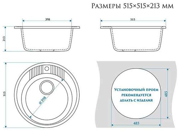 - Ширина мойки (от передней до задней стенки), см 51.5
