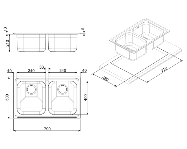 - Комплектация сифон, корзинчатый вентиль 3.5", фиксирующие зажимы