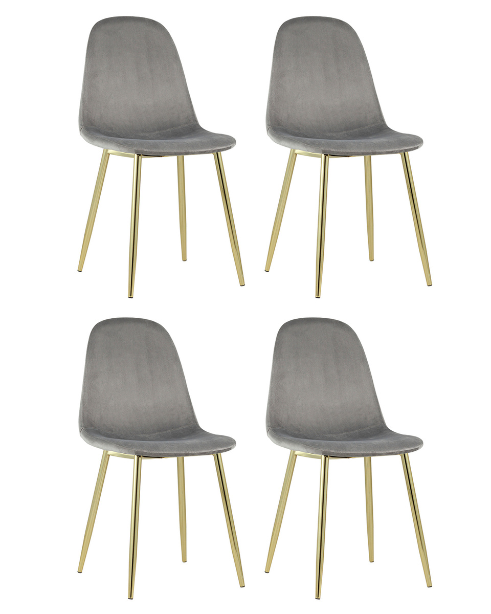 Комплект стульев Валенсия Комплект золотые ножки, Металл, Велюр, серый, 4 шт.