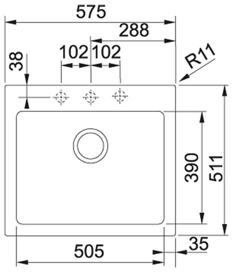 - Диаметр сливного отверстия 3.5"