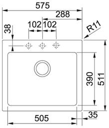 - Ширина мойки 57.5 см