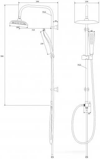 - Вылет верхнего душа 350 мм