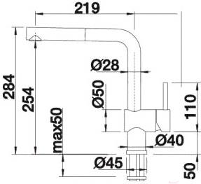 - Высота излива 253 мм