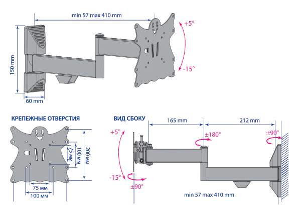- Тип крепления к подвесу VESA 75x75; VESA 100x100; VESA 200x100; VESA 200x200